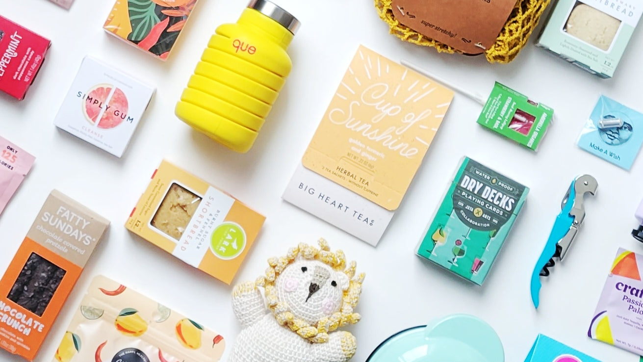 Keep in mind the number of items and sizes for your chosen gift box. Our Minis hold 1-4 small items; our Originals hold 4-8 or larger items.